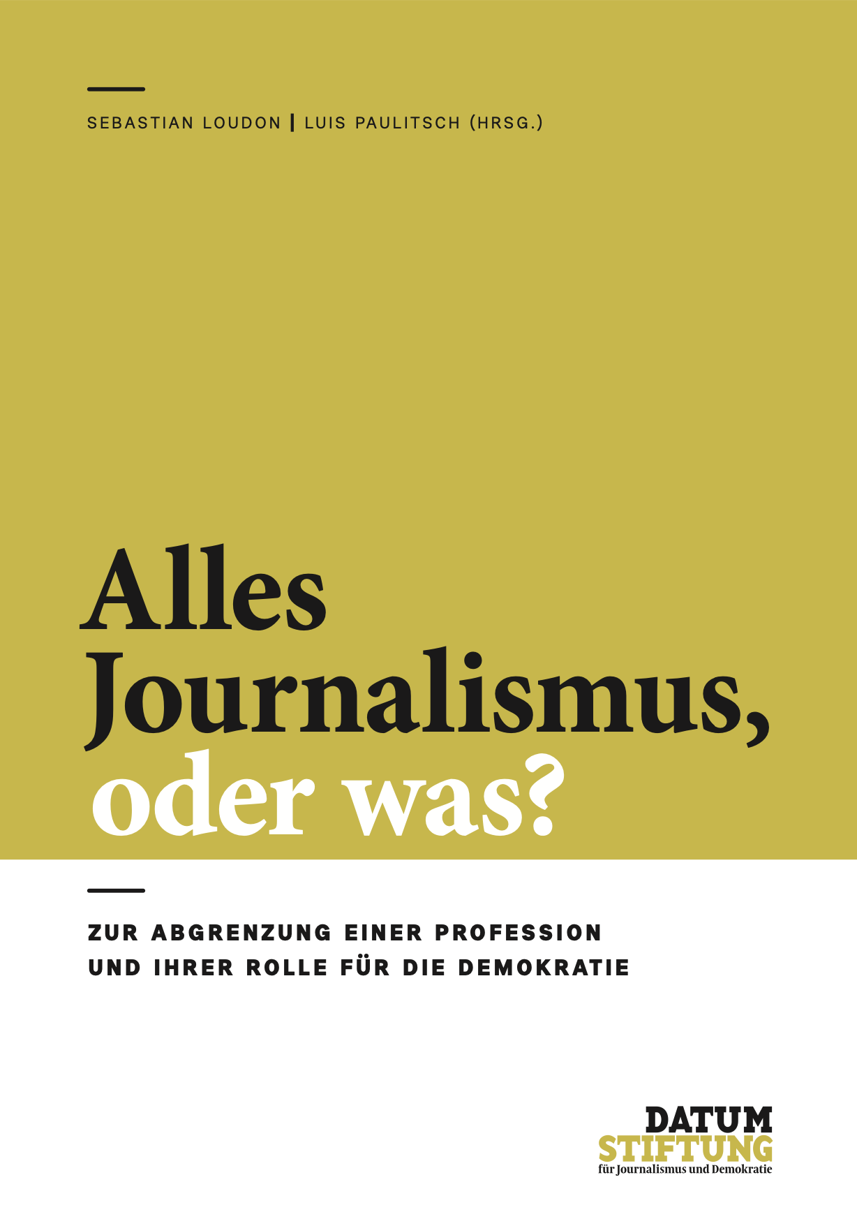 „Alles Journalismus, oder was?“ ist die erste große Publikation der DATUM STIFTUNG und widmet sich der Frage, was Journalismus heute eigentlich bedeutet. Der von Sebastian Loudon und Luis Paulitsch herausgegebene Sammelband legt den Fokus auf die Abgrenzung zu anderen Kommunikationsformen – ein Anliegen, das in Zeiten von Social Media und Künstlicher Intelligenz besonders dringlich erscheint. Mit Beiträgen ausgewiesener Expert:innen formuliert er konkrete Kriterien, die Politik, Medienschaffenden und dem Publikum gleichermaßen Orientierung bieten sollen.